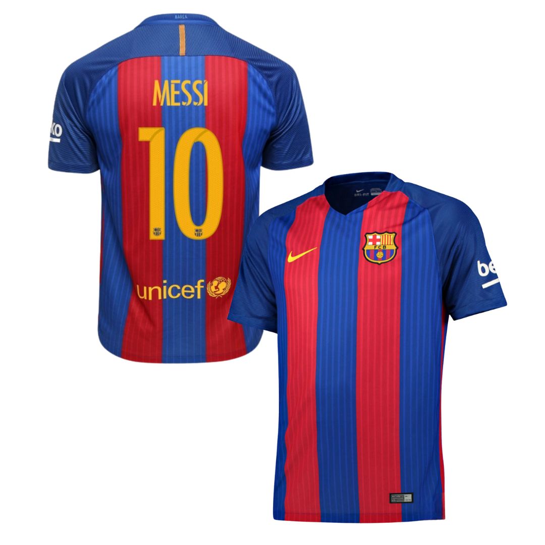 Camisa Retrô Barcelona I Messi #10 2016 - Torcedor Masculina - Vermelho e Azul